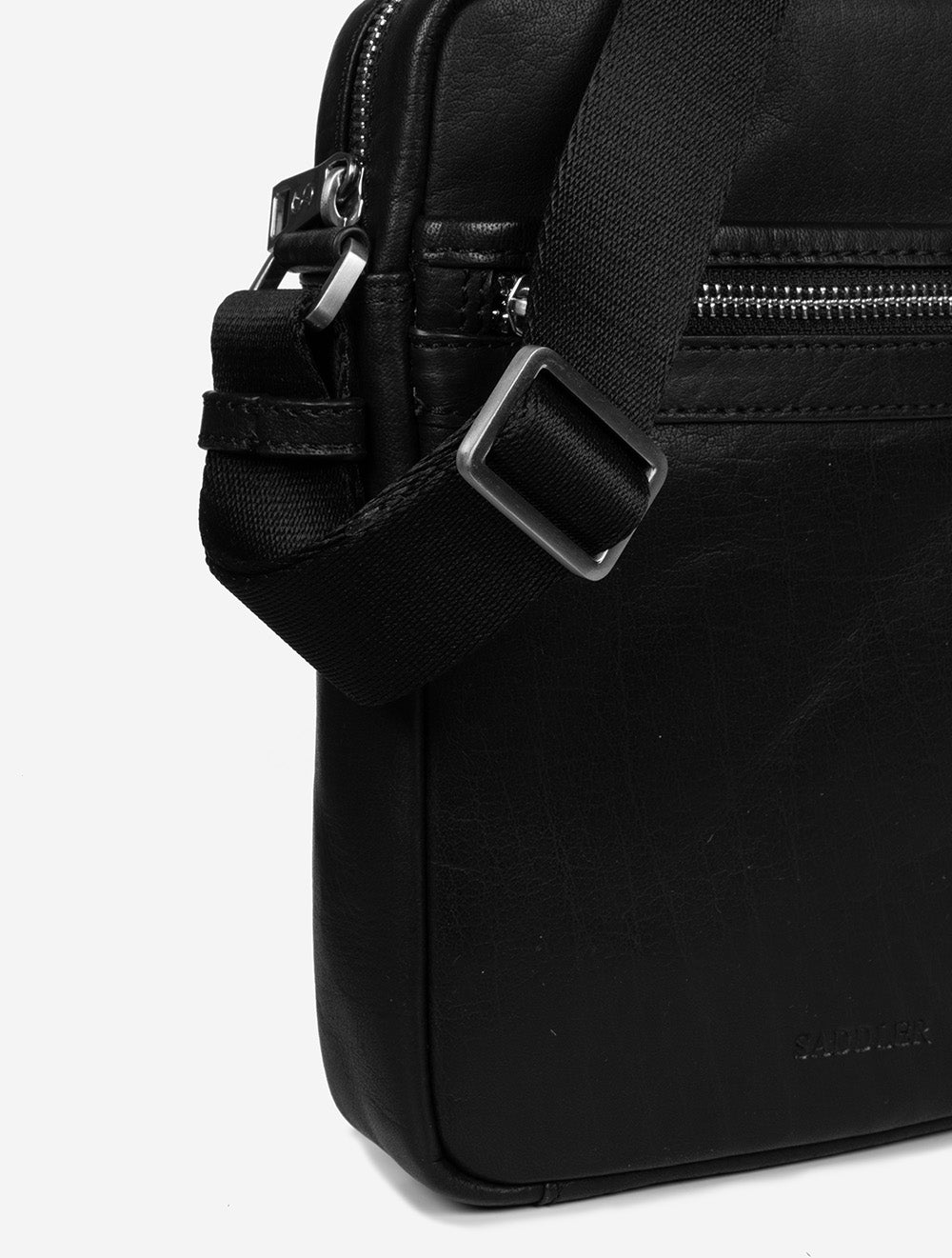 Messenger bag Valle by Saddler. Functional small shoulder bag made of soft full grain leather with a smooth finish. The bag opens up to a spacious main compartment with two slip-in pockets for easy organisation of your things. Metal zip closure. On the front of the bag there is a pocket with a zip for safe storage that is easily accessible. The attraction webbed shoulder strap is adjustable and detachable. Length max. 150 cm min. 81 cm. The leather in this product is of the highest quality and has been treated in tanneries certified by Leather Working Group.
