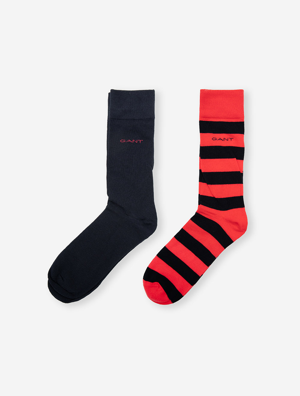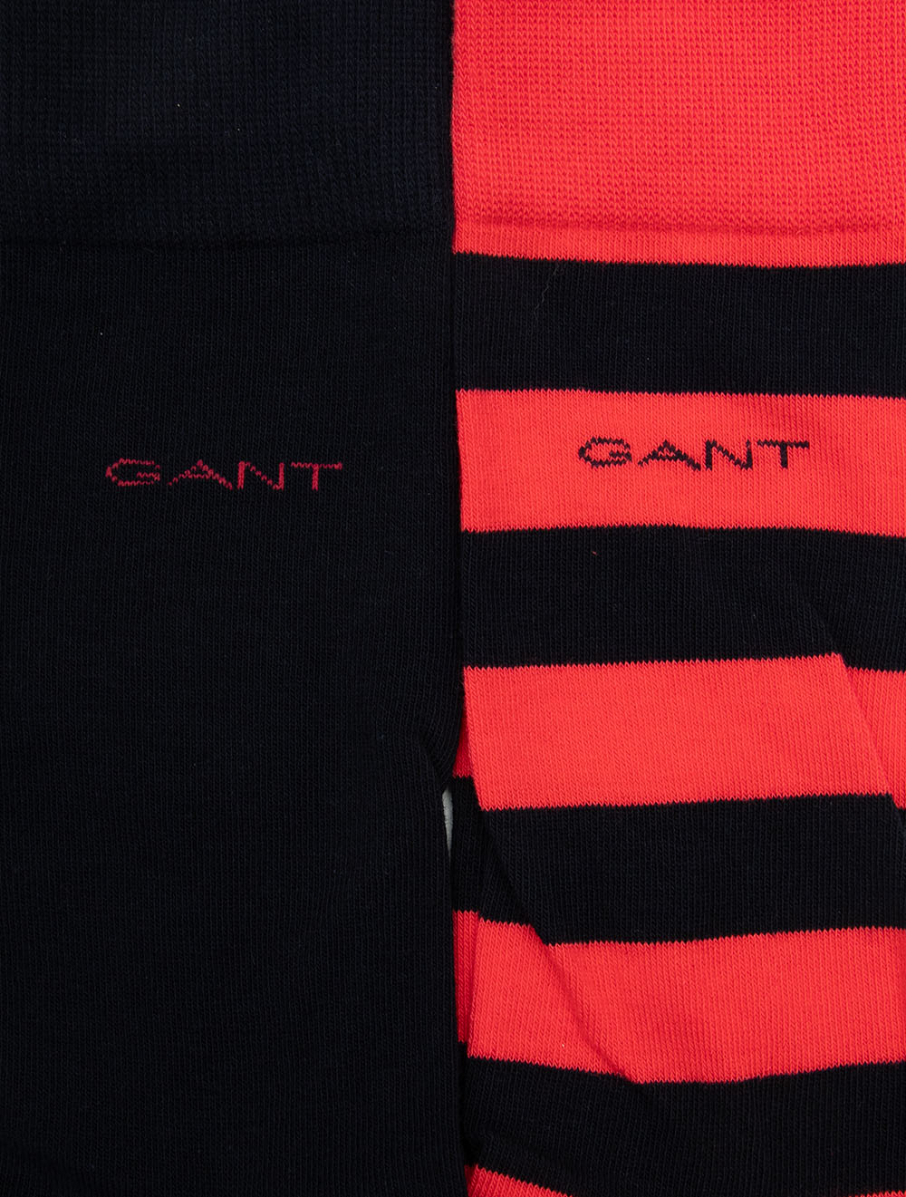 Add a pop of color and pattern to your wardrobe with the GANT 2-Pack Barstriped & Solid Socks in Watermelon Red. This set includes one pair of classic solid color socks and one pair featuring a subtle barstripe pattern, offering versatile options for any occasion. Made from a high-quality combed cotton blend, these socks are designed with a double welt hem for a comfortable fit and durability. The GANT intarsia logo at the ankle adds a signature touch, while the soft fabric ensures all-day comfort. Perfect for both formal and casual wear, these socks are a must-have in your sock collection.