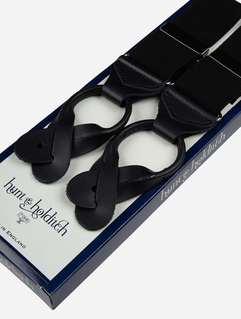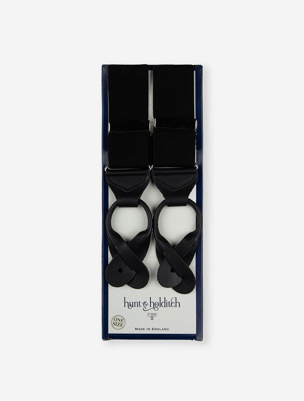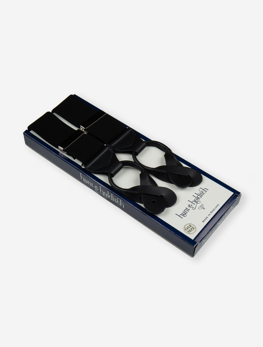 Elevate your style with the Hunt and Holditch Braces Leather Black. Designed by the esteemed Hunt & Holditch brand, established in 1840, these button braces are a perfect combination of luxury and functionality. With 38mm straps, sturdy leather ends, and fully adjustable sliders, they offer a sophisticated fit. The "Y" straps ensure comfort and support, making these braces a versatile accessory. With a length of 114cm and width of 3.8cm, these braces add an element of elegance to any ensemble. Beautifully boxed, they make an ideal gift for the stylish gentleman.