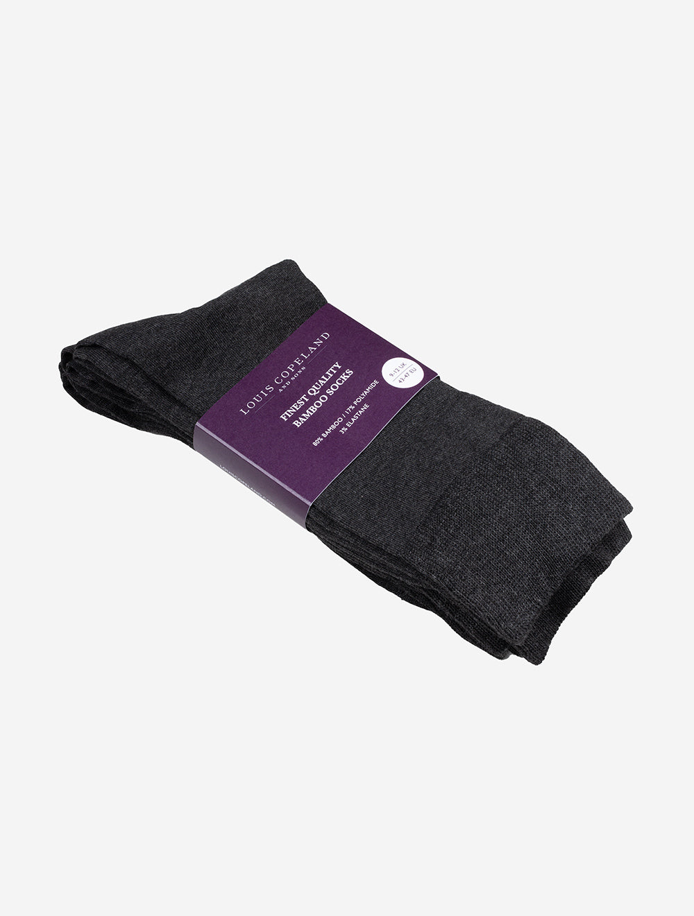 The Louis Copeland 3 Pack Socks in Charcoal are the perfect essential for your sock drawer. Crafted from environmentally friendly bamboo fabric, these socks offer a breathable and hypoallergenic design, ideal for those with sensitive skin or allergies. Bamboo's moisture-wicking and anti-bacterial properties keep your feet dry, cool, and odor-free throughout the day. Available in two sizes, this 3-pack provides excellent value and is designed to retain softness and comfort wash after wash. Whether you're at work or on the go, these socks will ensure all-day freshness and comfort.
